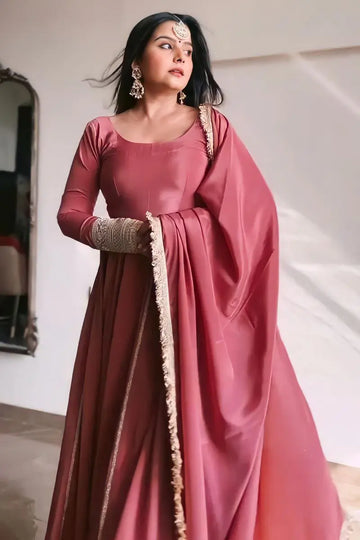 Anaya Designer Studio New Modern Dusty Pink Gown For Raksha Bandhan 2023 That Comes With Chinon Silk Design.