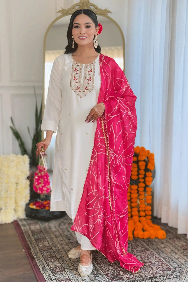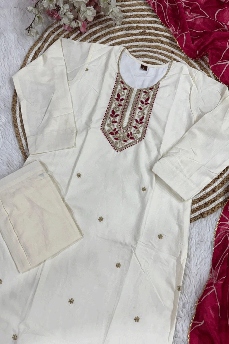 New Traditional Embroidery Work White Kurti Pair For Summer From Anaya Designer Studio