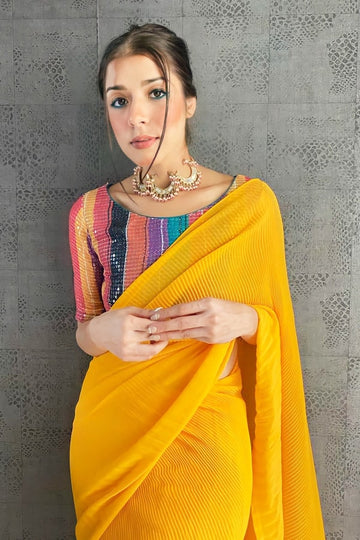Similar Category: Modern Farewell SareesRelated : Farewell party modern farewell sarees Yellow | class 12 modern farewell sarees | modern farewell sarees | yellow saree for farewell party Buy now | saree for girls farewell party