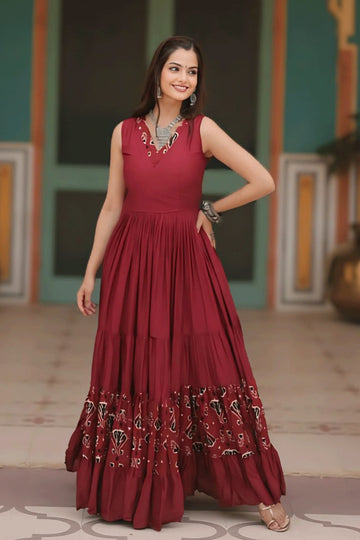 Traditional Festival Special Rayon Fabric Sleeveless Gown For Women