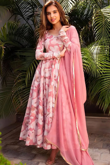 New Arrival Floral Pink Gown For Raksha Bandhan 2023 To Celebrate Special Day of Brother And Sister With Anaya Designer Studio Raksha Bandhan Special Gown Collection.