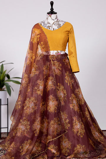 Latest Floral Print Lehenga Choli With Dupatta For Wedding Ceremony Comes With Organza Fabric And Floral Print Work Design.