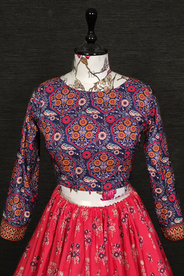 New Arrival Latest Floral Print Lehenga For Sister Wedding Made With Vaishali Silk Fabric And Fully Floral Print Design And You Can Wear it With Muslin Silk Dupatta At Anaya Designer Studio.