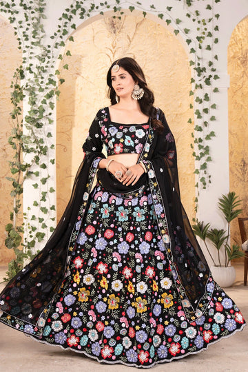 New Flower Designer Black Lehenga For Reception From Anaya Designer Studio