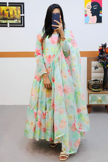Flower Print Gown Dress For Girls - Anaya Designer Studio