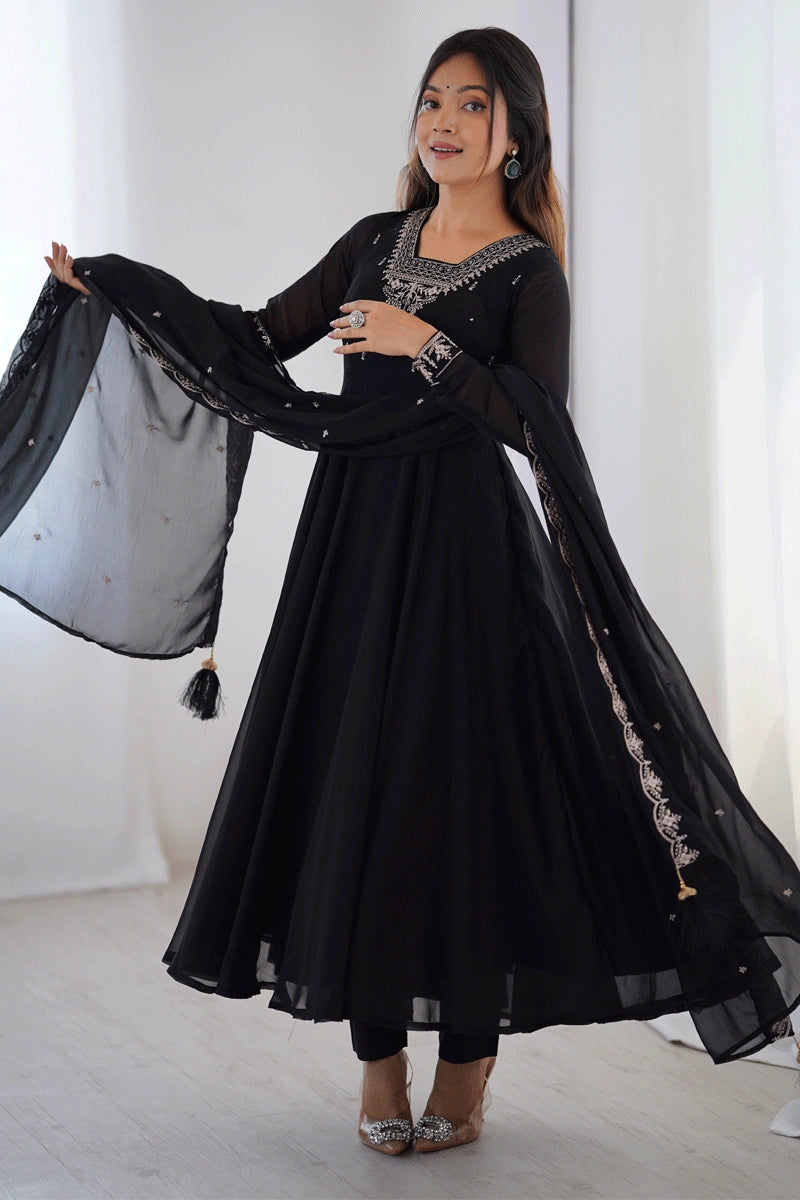 Full Black Anarkali Long Gown For Sangeet Rasam