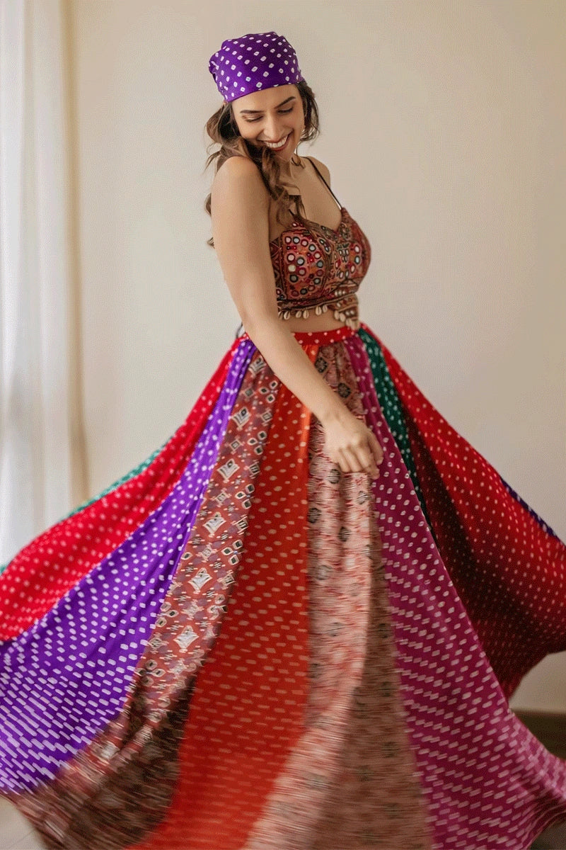 Fully Stitched Multicolor Gamthi Work Lehenga Choli For Navratri From Anaya Designer Studio