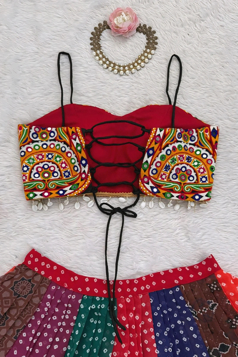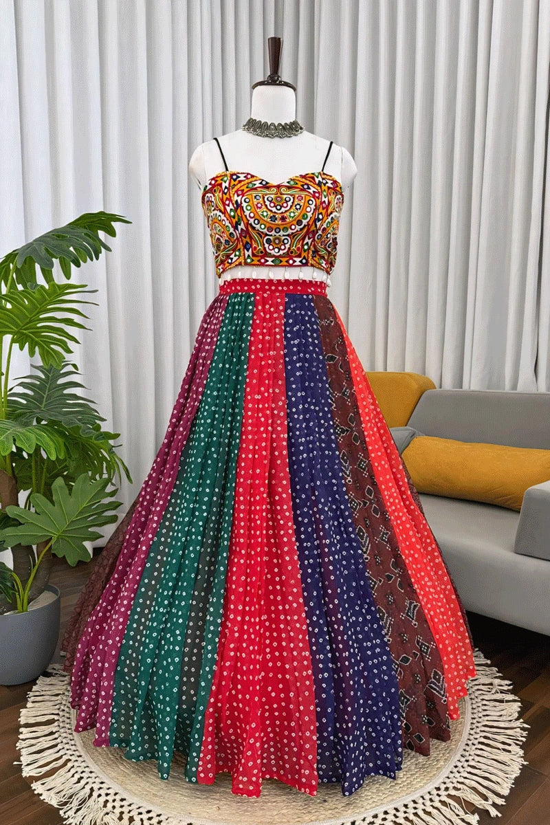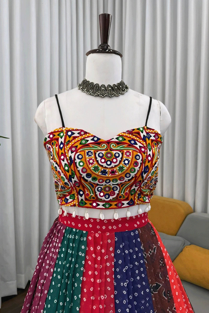 Fully Stitched Multicolor Gamthi Work Lehenga Choli For Navratri