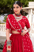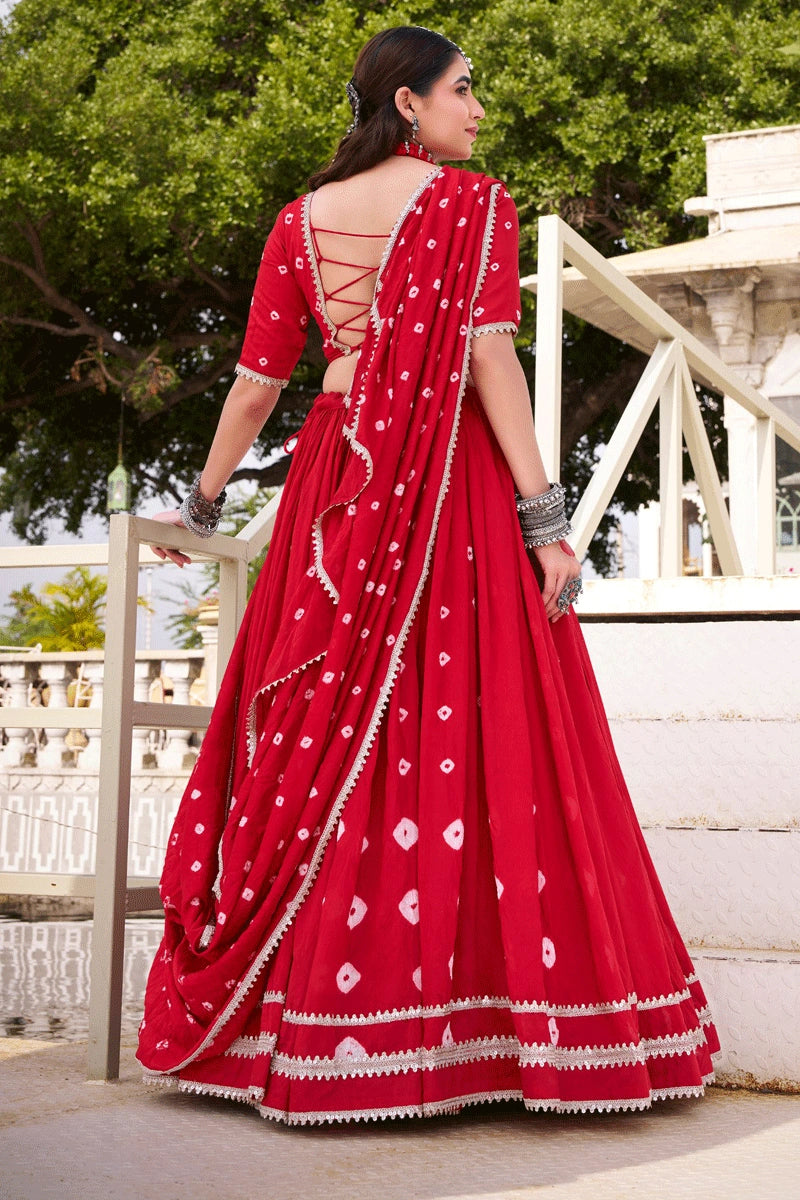 Red Color Fully Stitched Bandhani Print Lehenga Choli For Women