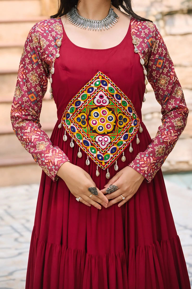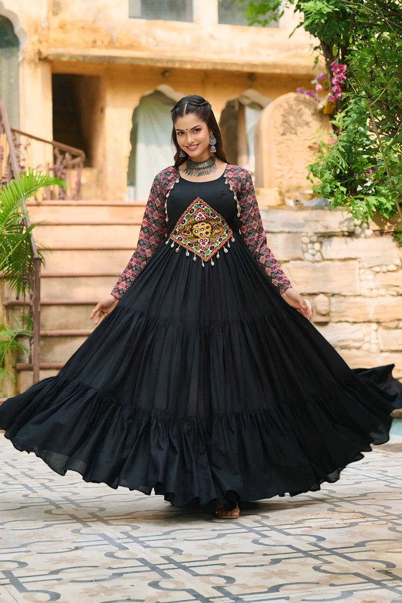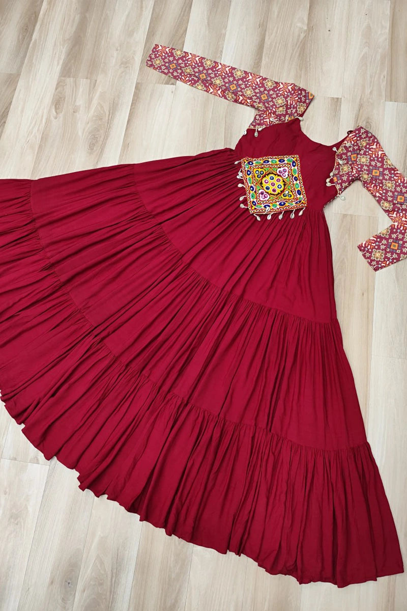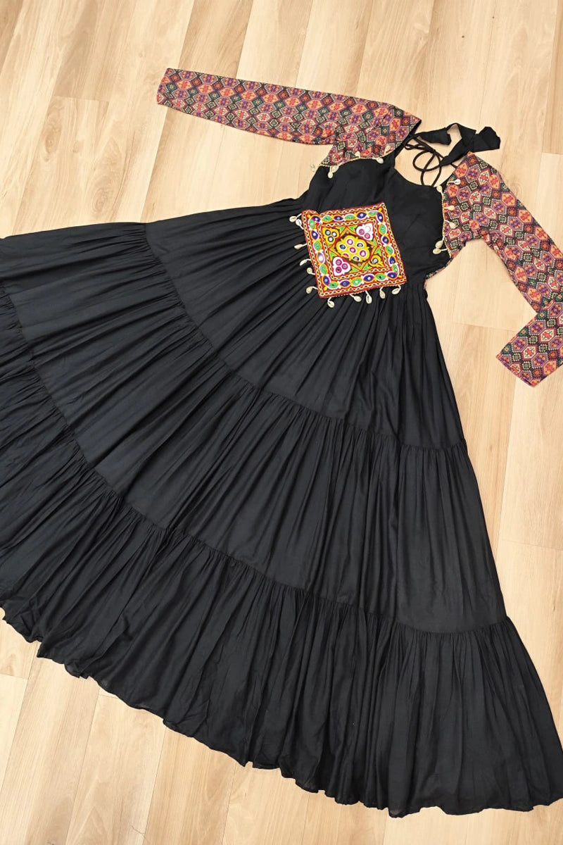New Designer Gamthi Work Long Cotton Gown For Navratri Festival From Anaya Designer Studio