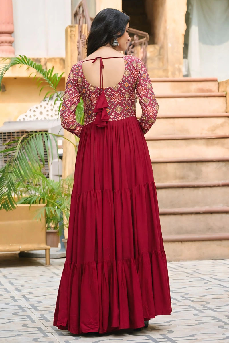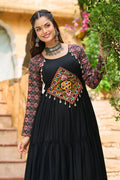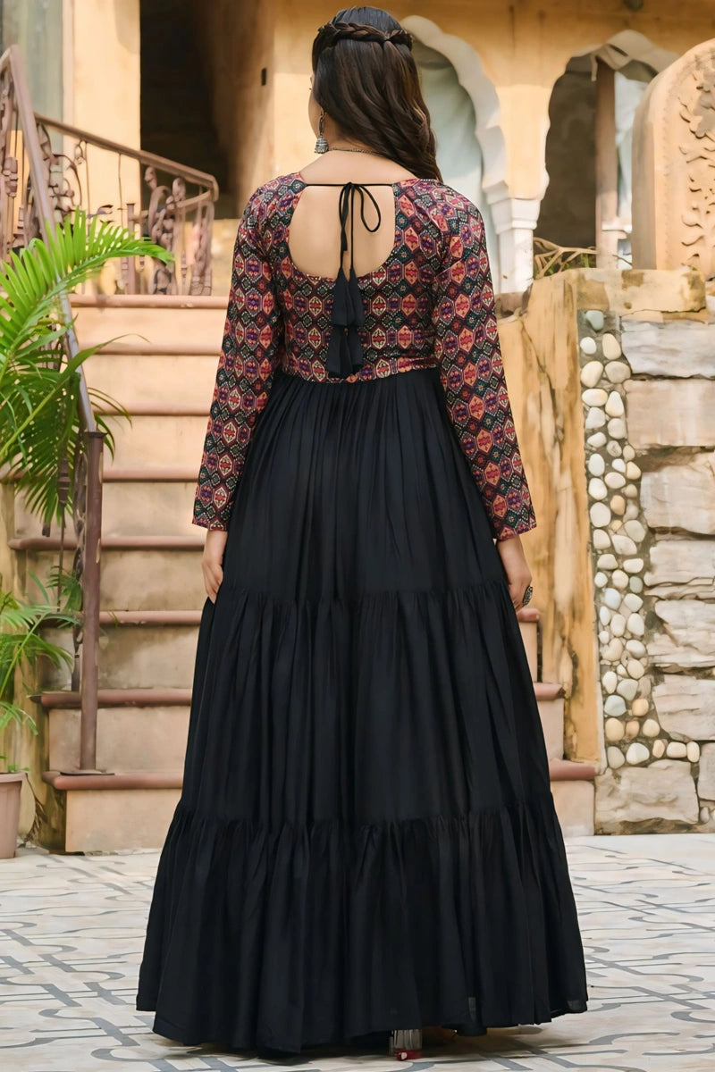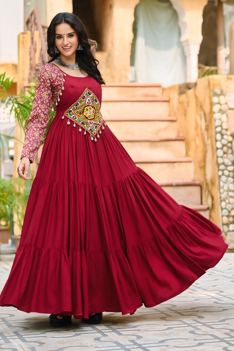 New Designer Gamthi Work Long Cotton Gown For Navratri Festival From Anaya Designer Studio