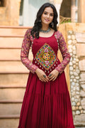 Gamthi Work Long Cotton Gown For Navratri Festival