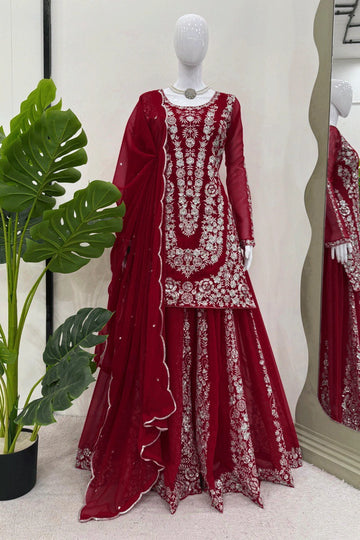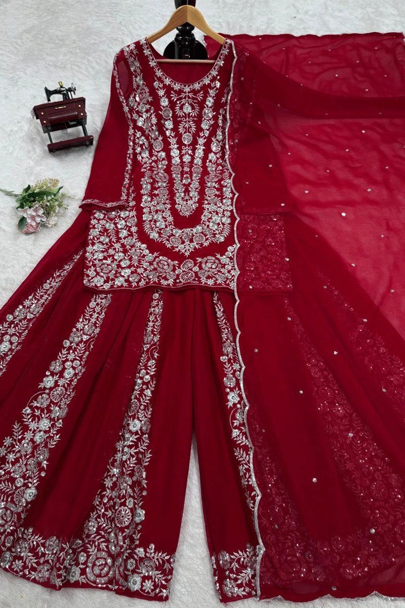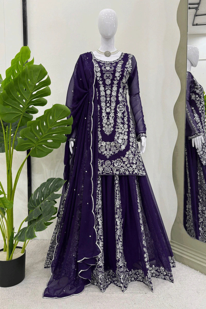Georgette Full Pair Sharara Suit With Dupatta For Wedding