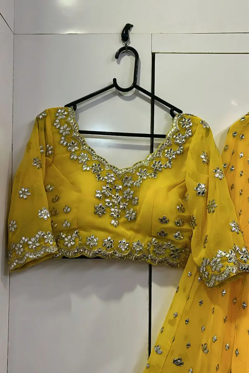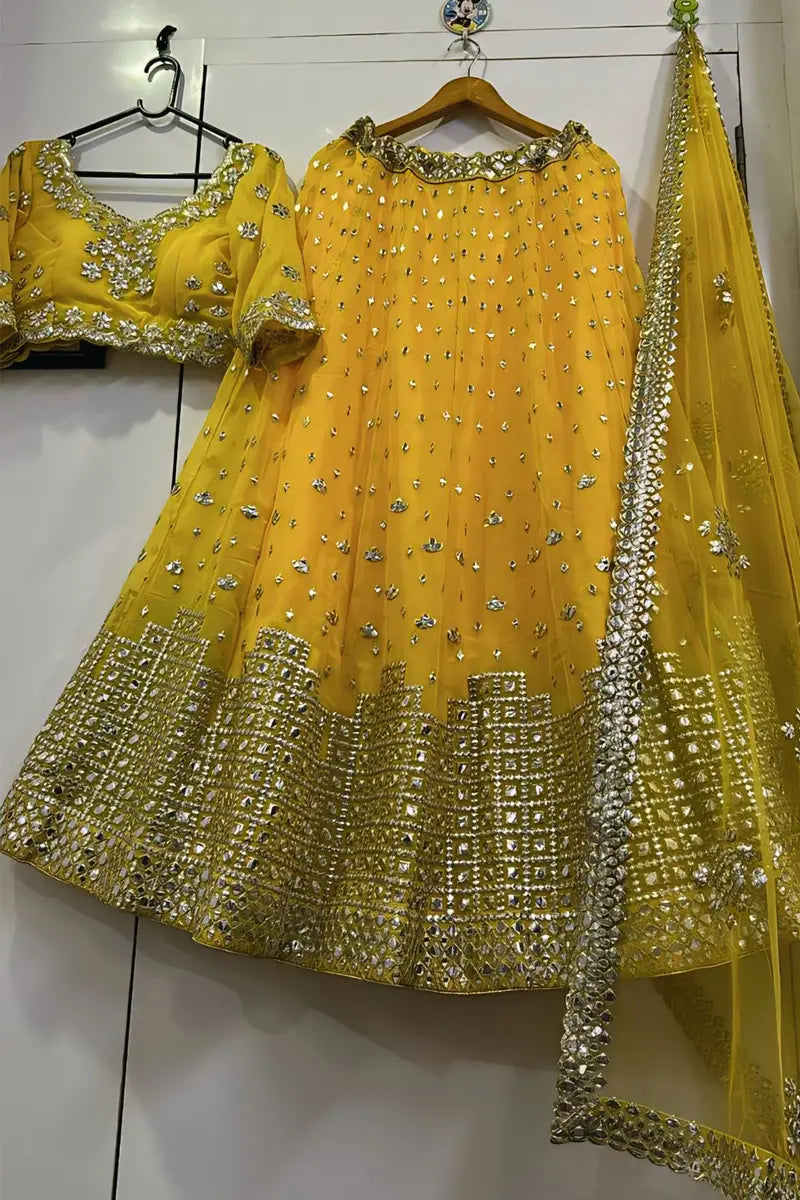 New Arrival Georgette Yellow Lehnga with Paper Mirror Work For Bridal New Look in Haldi Ceremony