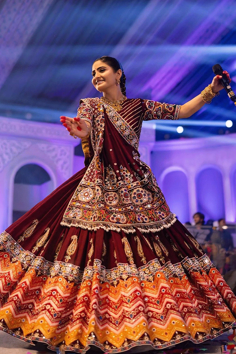 Gujarati Singer Gita Rabari Gamthi Work Chaniya Choli For Navratri From Anaya Designer Studio