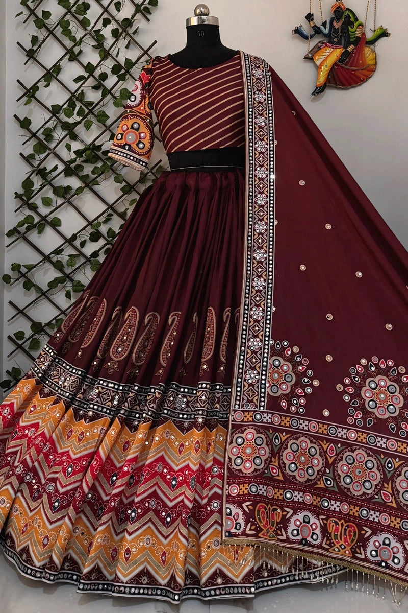 Package Contains: Fully Stitched Lehenga, Unstitched Choli Fabric & Dupatta