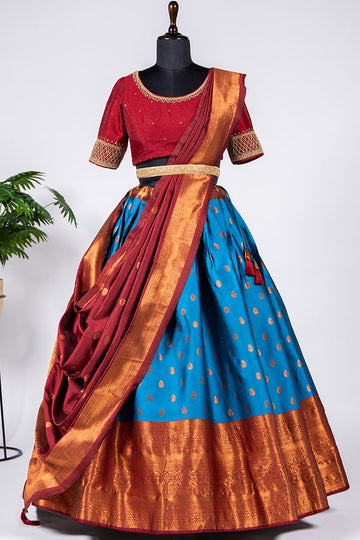 New Arrival Weaving Silk Stitched South Indian Half Saree For Wedding Function By Anaya Designer Studio.