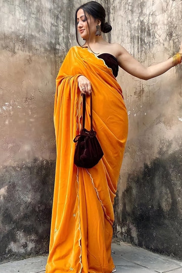 More Categories: Party Wear Saree For Wedding |Best South Indian Wedding SareeA woman in a plain-looking velvet saree on dark-colored velvet fabric will be the talk of the town.There are many styles and shapes of blouses that can be worn for special occasions.Related: Heavy Designer Party Wear Saree For Wedding 2022 | Designer Saree For Wedding | Designer Saree For Bride | Indian Wedding Saree | Wedding Guest Saree Look | Best Saree Online | Velvet Saree Design | Velvet Saree For Wedding | Designer Velvet Saree Online | Lehenga Style Saree | Saree With Dupatta