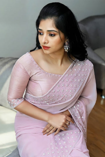 Indian wedding guest saree look Pink 2021