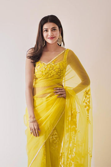 Kajal Aggarwal In Saree Yellow Online Shopping 2021