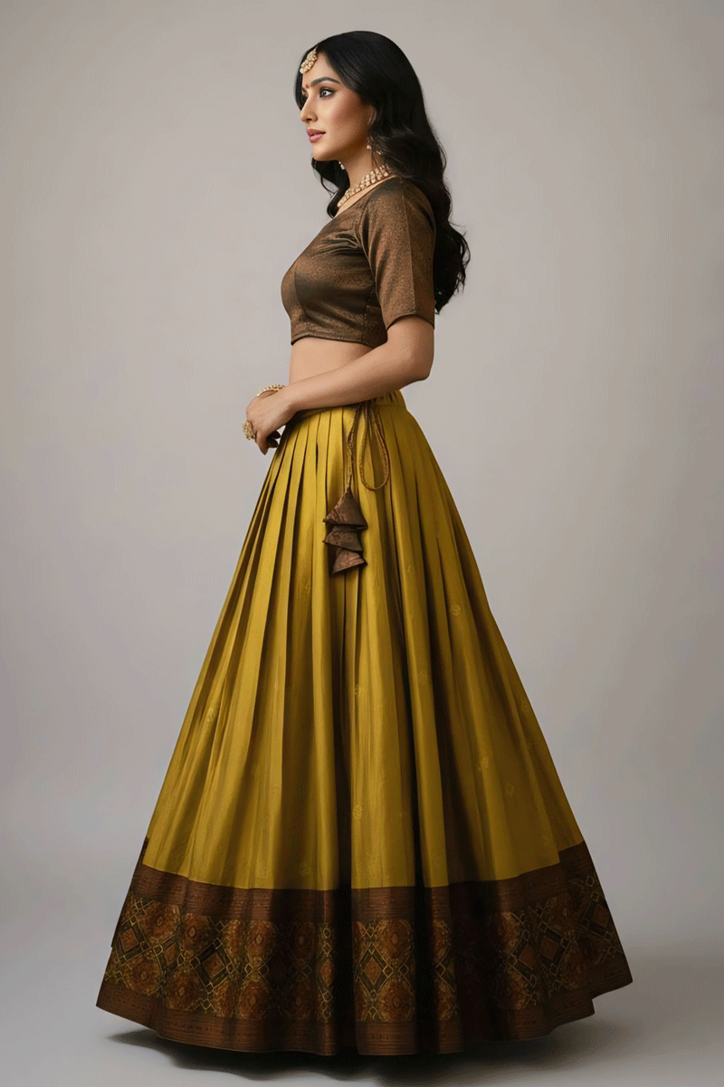Kanjiveram Silk Pure Zari Stitched Lehenga with Unstitched Blouse and Dupatta