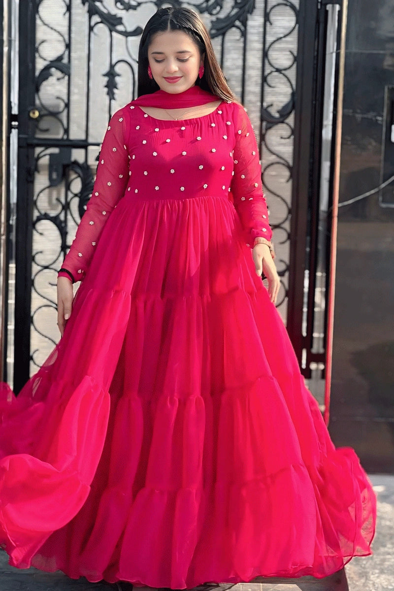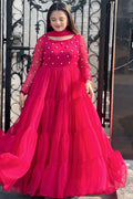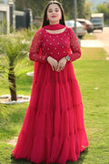 Karwa Chauth Look In Long Sleeves Anarkali Suit For Girl