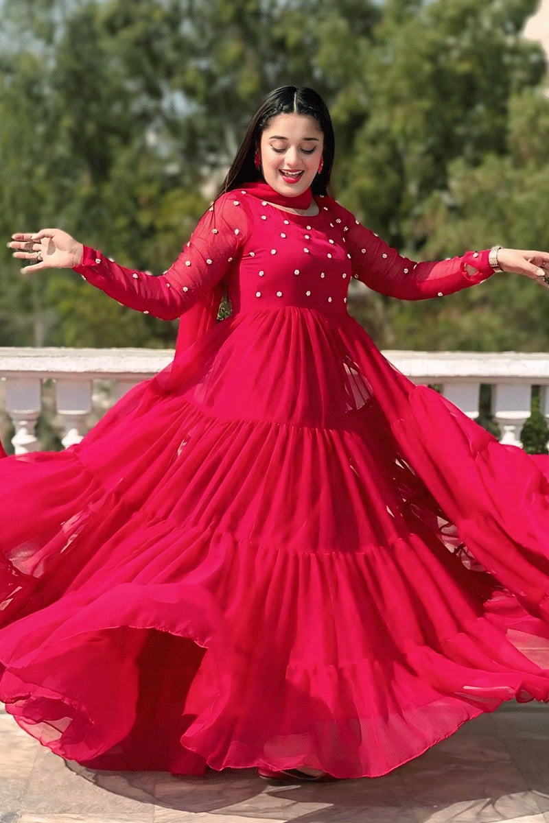 Karwa Chauth Look In Long Sleeves Anarkali Suit For Girl From Anaya Designer Studio