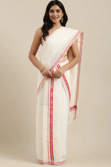 If you're interested in the latest Kerala Kasavu sarees for online shopping, you can explore our Kerala kasavu special saree collection. Kerala Kasavu sarees are known for their traditional appeal and elegance, featuring off white color with golden borders, known as Kasavu.
