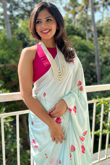Get The Latest Farewell Party Saree For Farewell Comes With Japan Satin Silk With Digital Printed Work Design