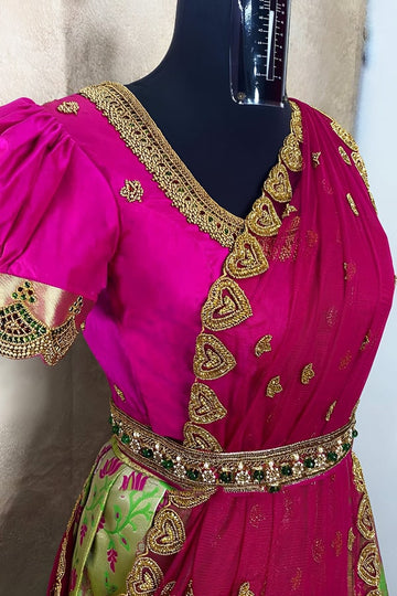 Latest Half Saree Dupatta For Women With Kanjivaram Silk Lehenga With Beautiful Embroidery Dupatta.