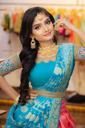 Related: Latest Half Saree Online Shopping For Women | Modern Kerala Kasavu Saree For Wedding | South Indian Half Saree | Kanjivaram Silk Half Saree | South Indian Kerala Half Saree Design | Simple Half Saree Designs | New Model Half Saree For Women | Modern Half Saree Colour CombinationsExchange & Replacement Policy