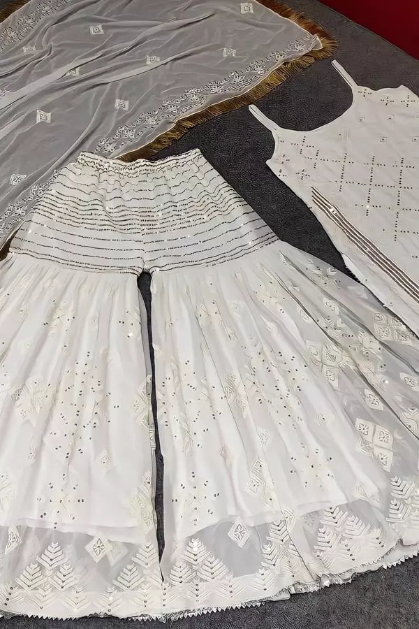 Sharara Suit Details:- Fabric: Faux Georgette Sharara Suit With Kameez