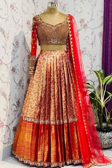 Lehenga Detail:- Fabric: Kanjiveram Silk