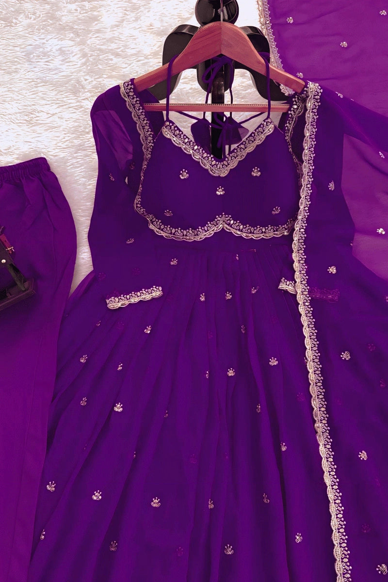 Latest Purple Color Anarkali Suit For Pooja From Anaya Designer Studio