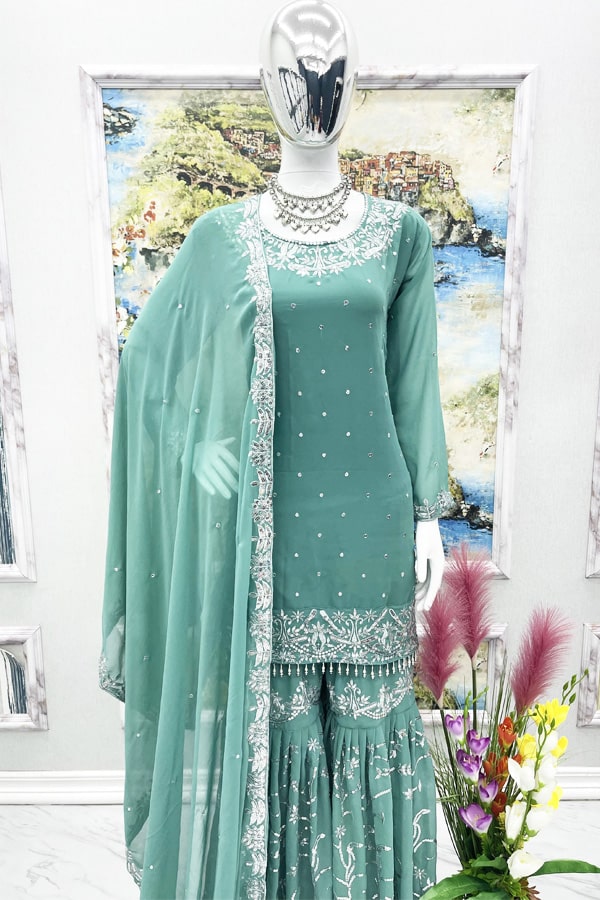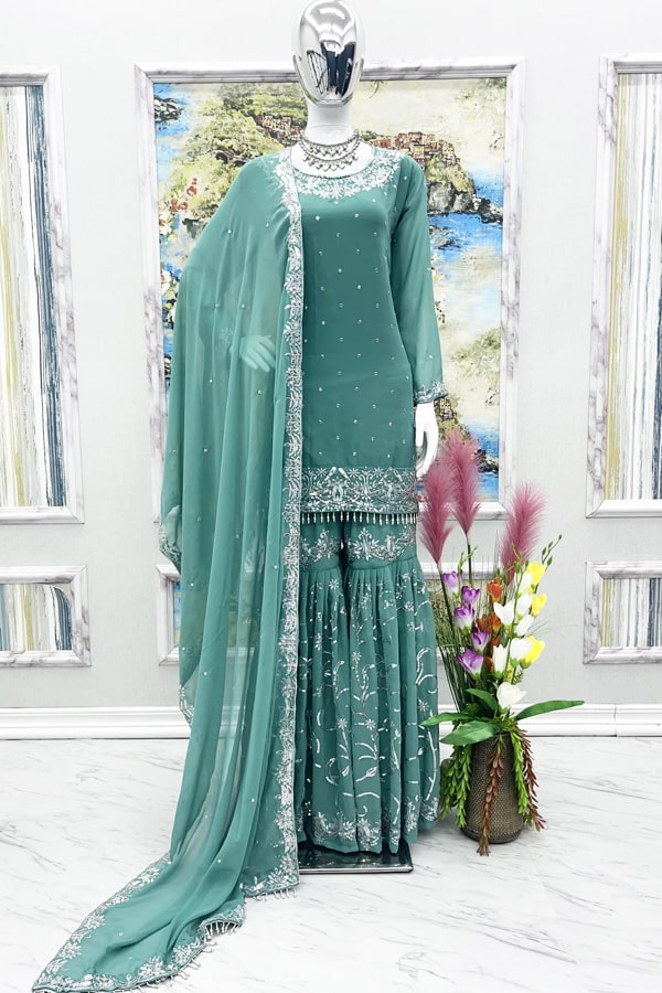 New Arrival Designer Pista Color Sharara Suit For Girls For Wedding And Reception 2023