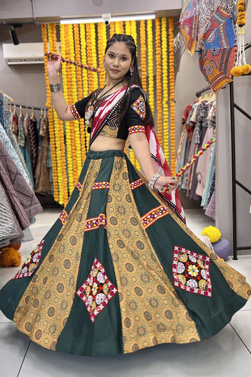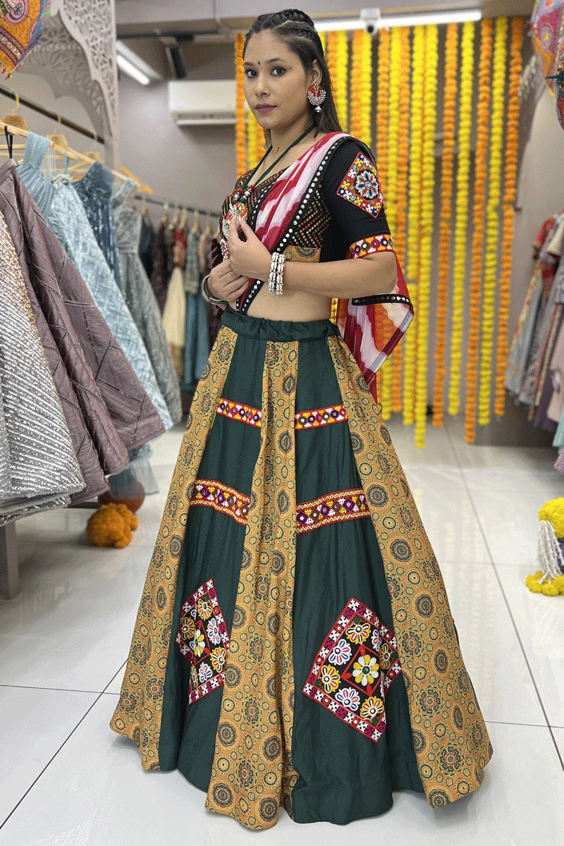 Traditional Latest Yellow And Green Combination Lehenga With ColourFul Dupatta For Women