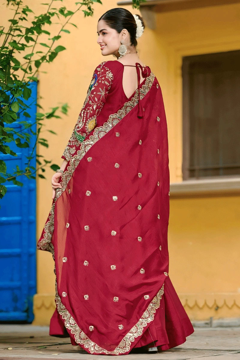 Long Sleeves Embroidery Work Gown For Karwa Chauth From Anaya Designer Studio