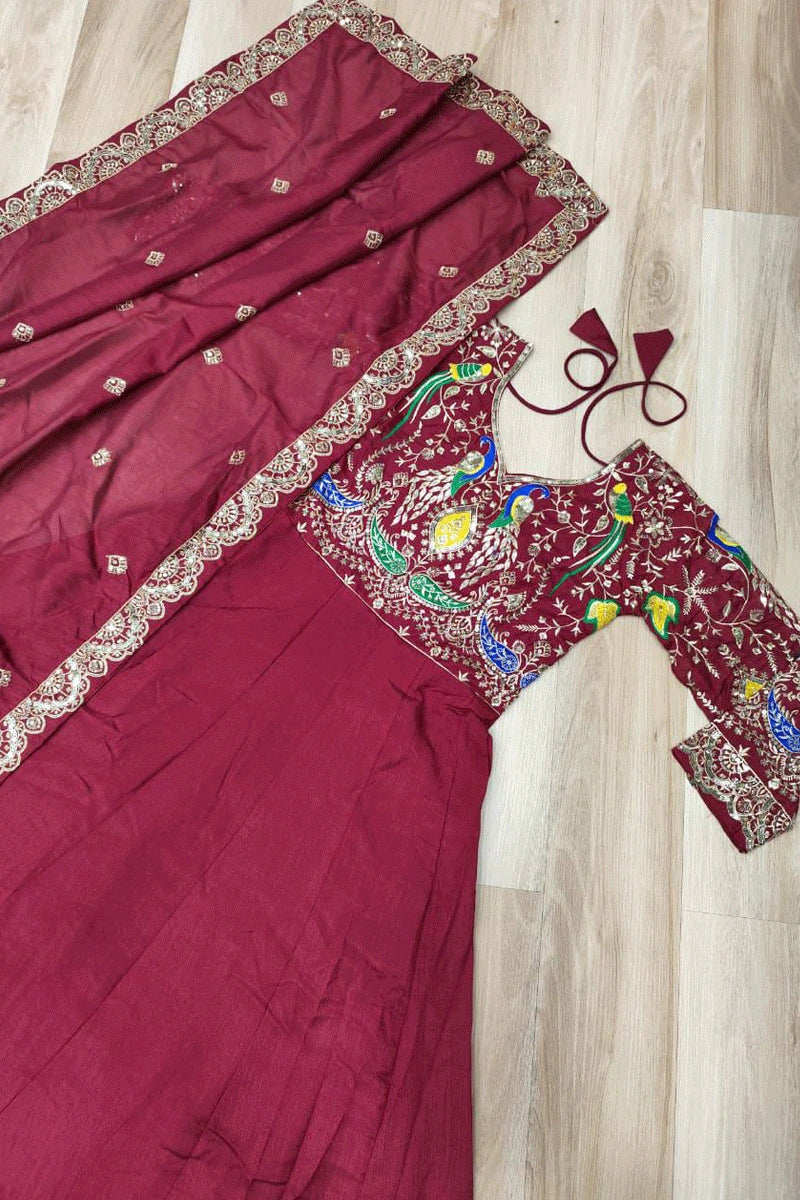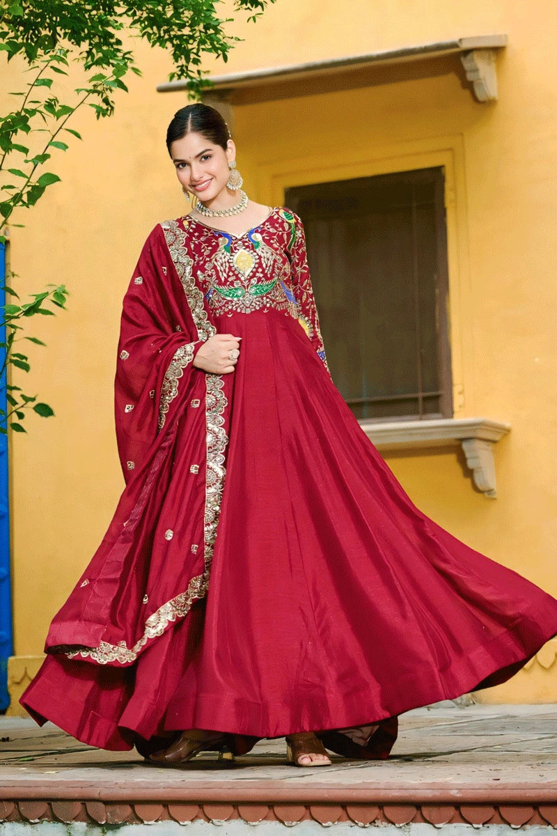 Long Sleeves Embroidery Work Gown For Karwa Chauth