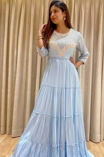 Gown Colour: Light Blue Best Anarkali Gown For Ladies
