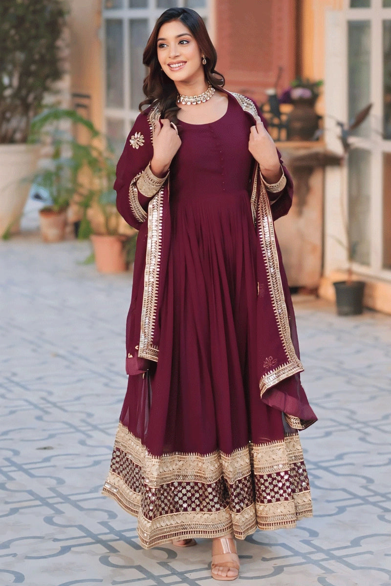 - Fabric & Work: Faux Blooming with embroidered zari and sequins work