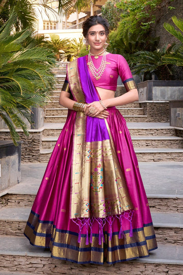 Product Description Of Marathi Style Paithani Silk Lehenga For Womens :