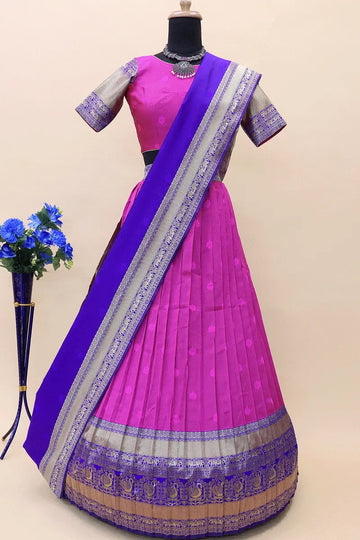 New Arrival Traditional Narayanpet Half Sarees With Price For Women Made With Banarasi Litch Silk Fabric With full zari weaving work design.