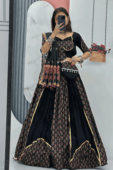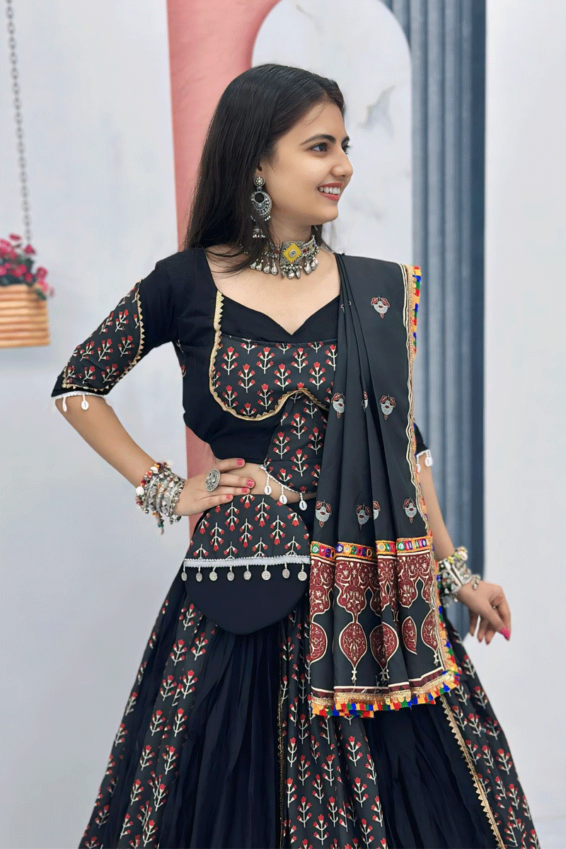 New Traditional Navratri Special Cotton Black Lehenga For Women From Anaya Designer Studio