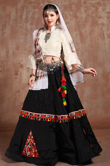 Traditional Navratri Special Gamthi Work Black Lehenga Choli With Dupatta For Women