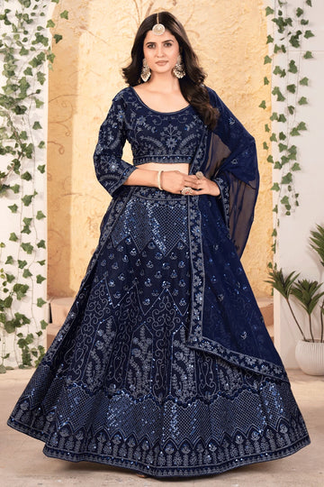 Navy Blue Sequence Work Lehenga For Bridal Engagement