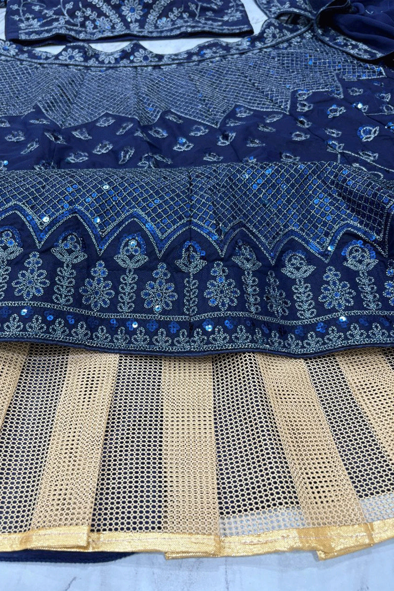 New Designer Navy Blue Sequence Work Lehenga For Bridal Engagement From Anaya Designer Studio