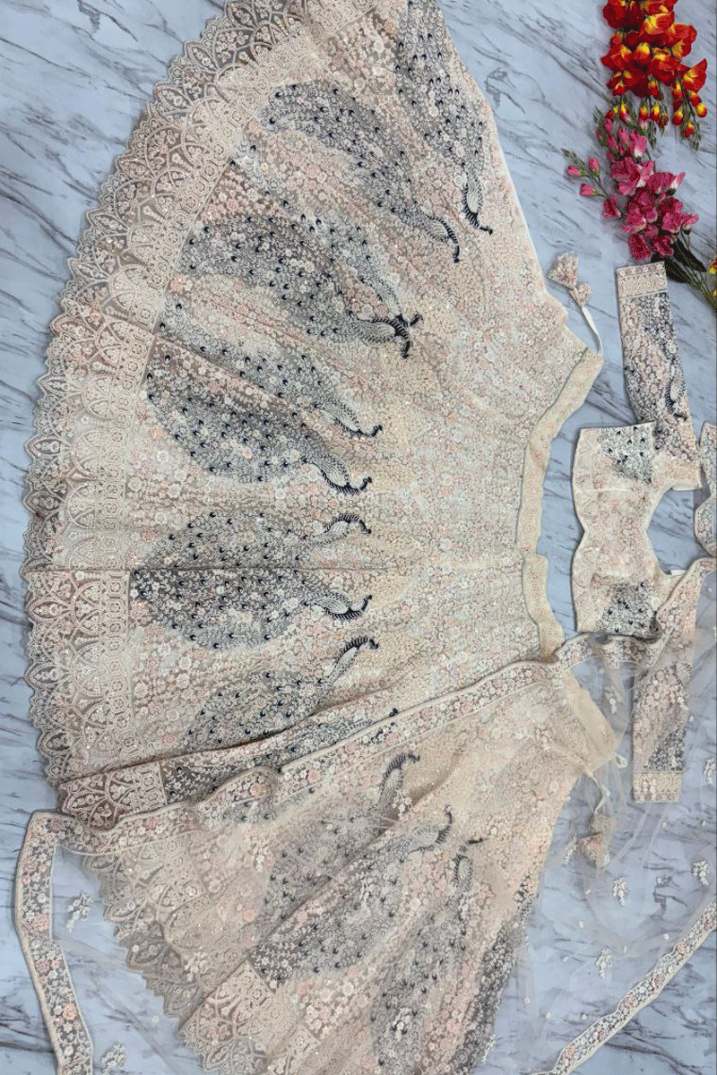 Work: Multicolor Thread Embroidery, Dori Work, Heavy Sandwich Sequins with Peacock Design