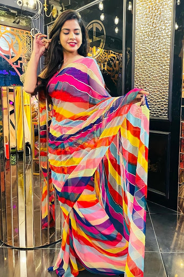 Buy this New saree design 2022 for girls Party wear. Launching new demanding Premium soft georgette saree with Leriya print & Sequence work.