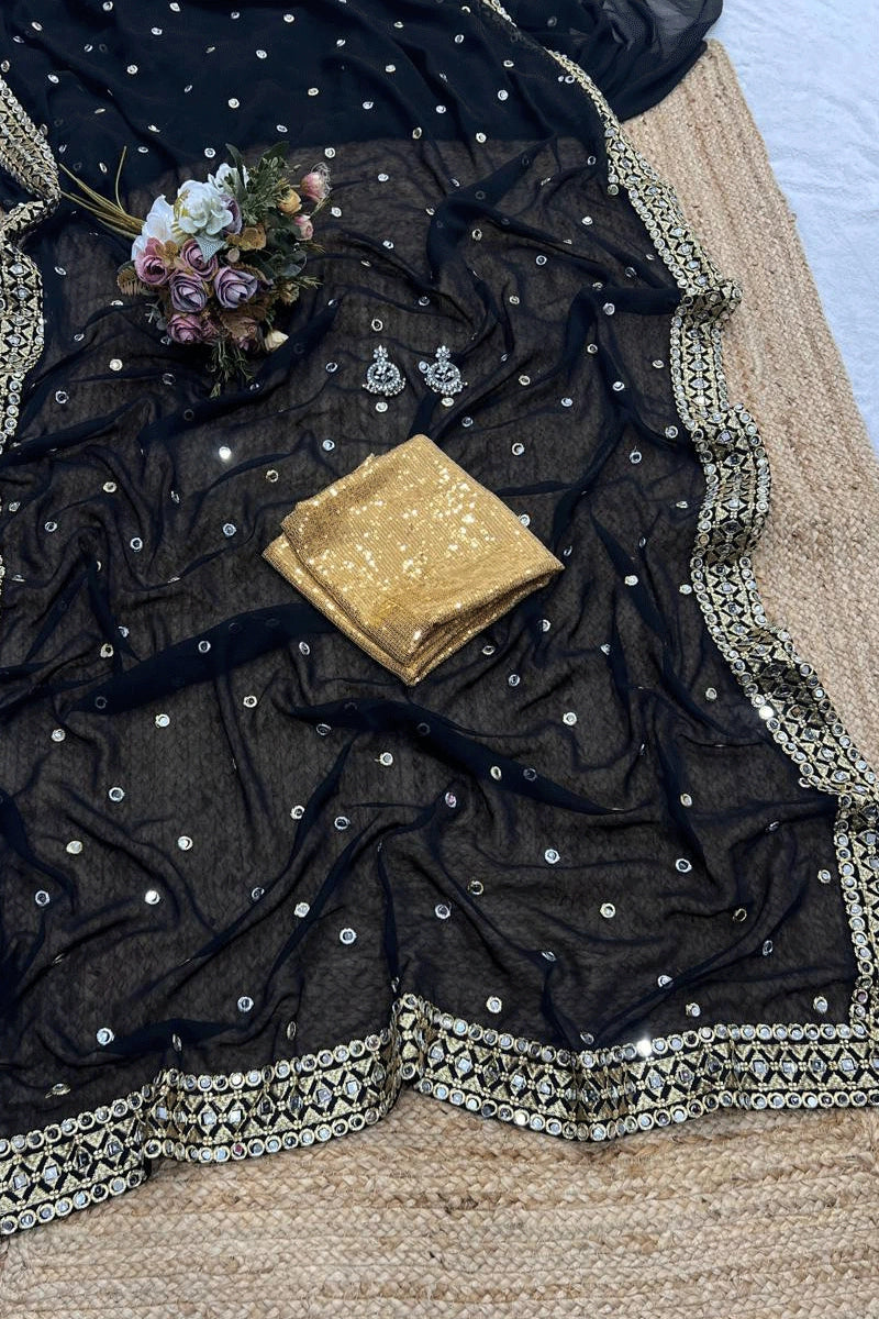 Related Keyword: nita ambani saree | black reception saree | reception saree | real mirror work saree | reception black saree | real mirror work black saree | reception black saree for womens