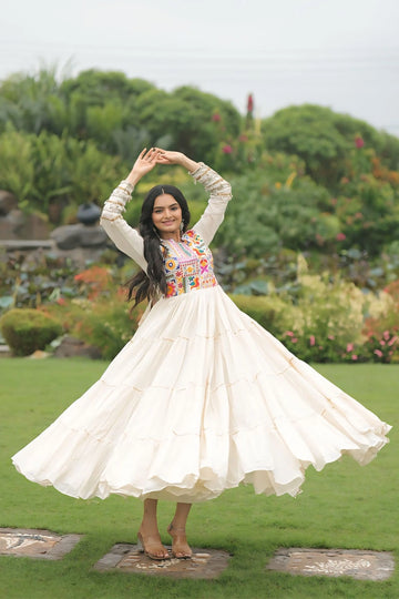 New Designer Off White Full Sleeve Long Gown For Navratri Festival From Anaya Designer Studio